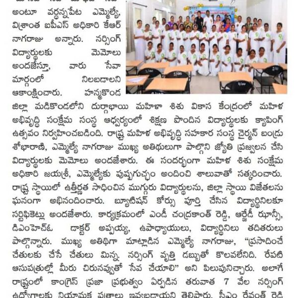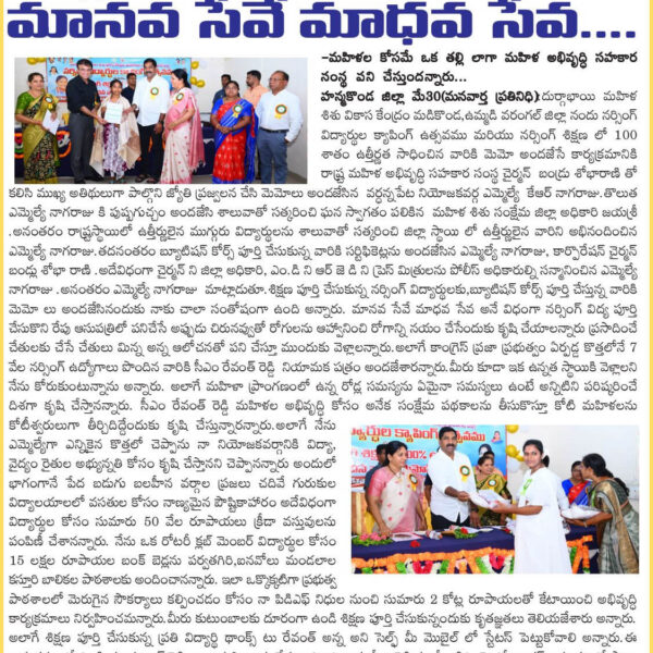 Paper Clippings Showcasing Various Programs and Activities at DMSVK, Madikonda Warangal